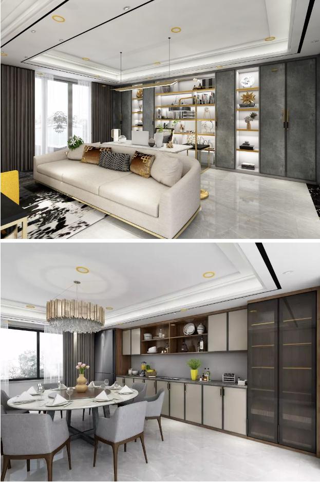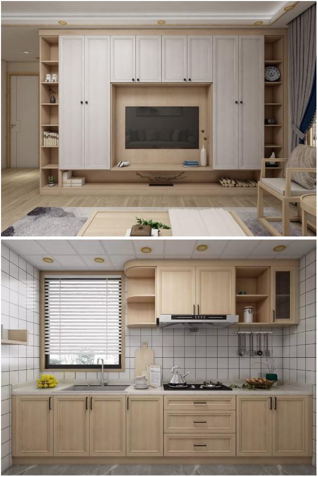 柜門主色可從鵬鴻六大系列生態(tài)板50款花色任意遴選,自由搭配,實現(xiàn)全系板材同色一體。