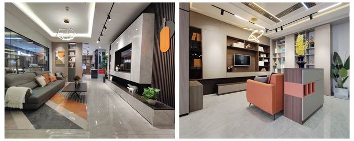 從墻面,到地面;從臺面,到飾面,品質(zhì)、藝術(shù)、個性三者巧妙融合于一。展廳各個環(huán)節(jié)的搭配,都滲透著設(shè)計師的獨具匠心。