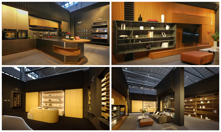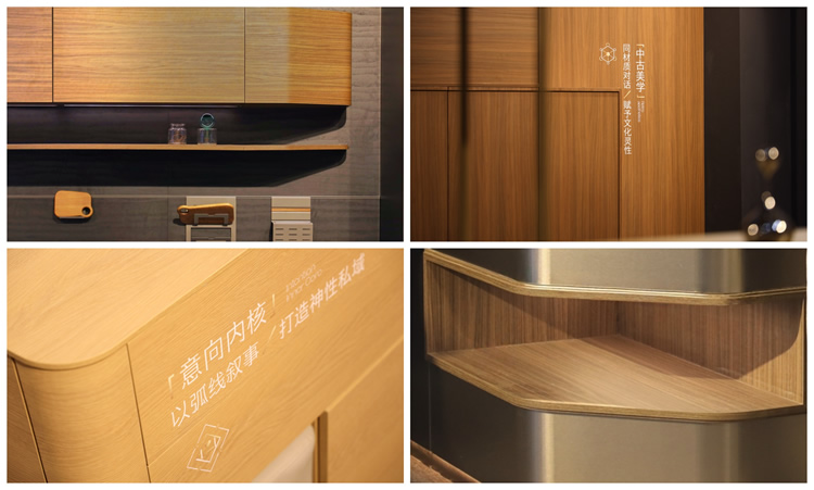 45度斜切結構、骨骼線條、弧形元素、ABA板材工藝……多元美學融合,呈現(xiàn)全新家居意境。應用上,ENF級環(huán)保,4.5米通頂家居,傳奇系列板材、第三代顆粒板、碳晶飾面板……為與會觀眾帶來高顏值、高個性化、高品質(zhì)的整家美學方案。